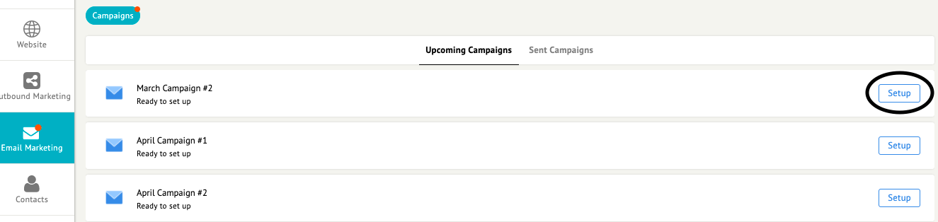 - Click on "Setup" button for the email you would like to schedule