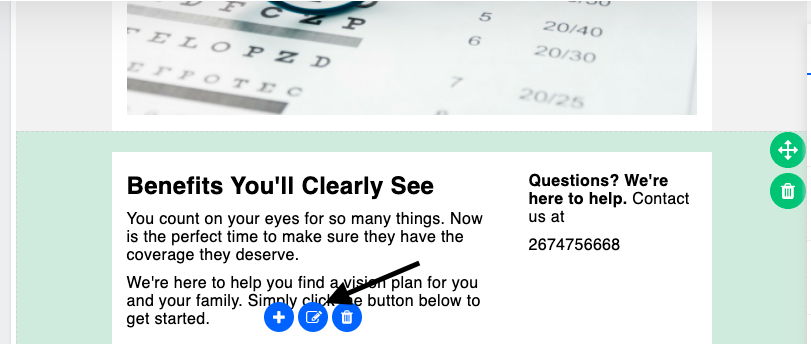 4. Now you can edit the email if you would like. The emails are built in sections so scroll over the section you would like to edit and click the edit icon.