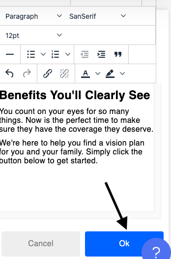 5. Edits are made on the right side of the page. When finished click the "OK" button