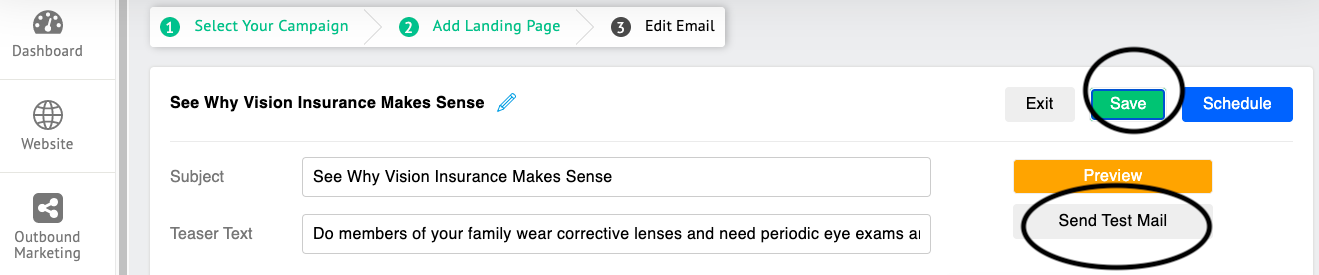 6. Once you are finished making edits to your email. Click the "Save" button. We also recommend previewing your email and sending a test email to yourself.