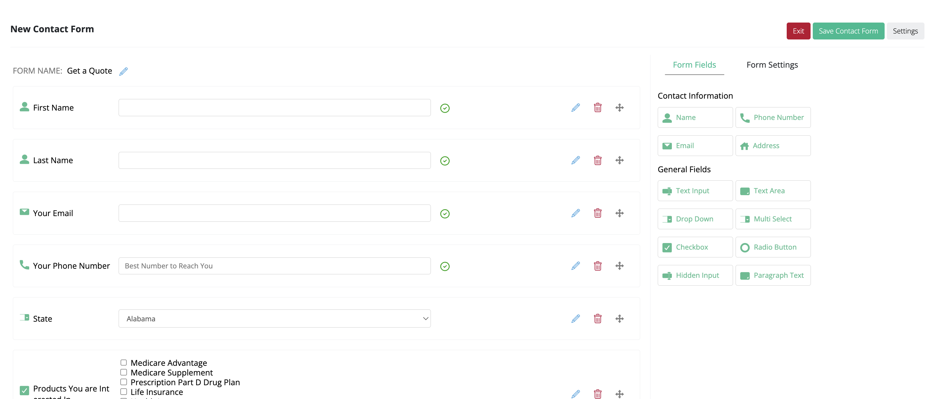 When you've finished creating your form template, click the green Save Contact Form button to save it.