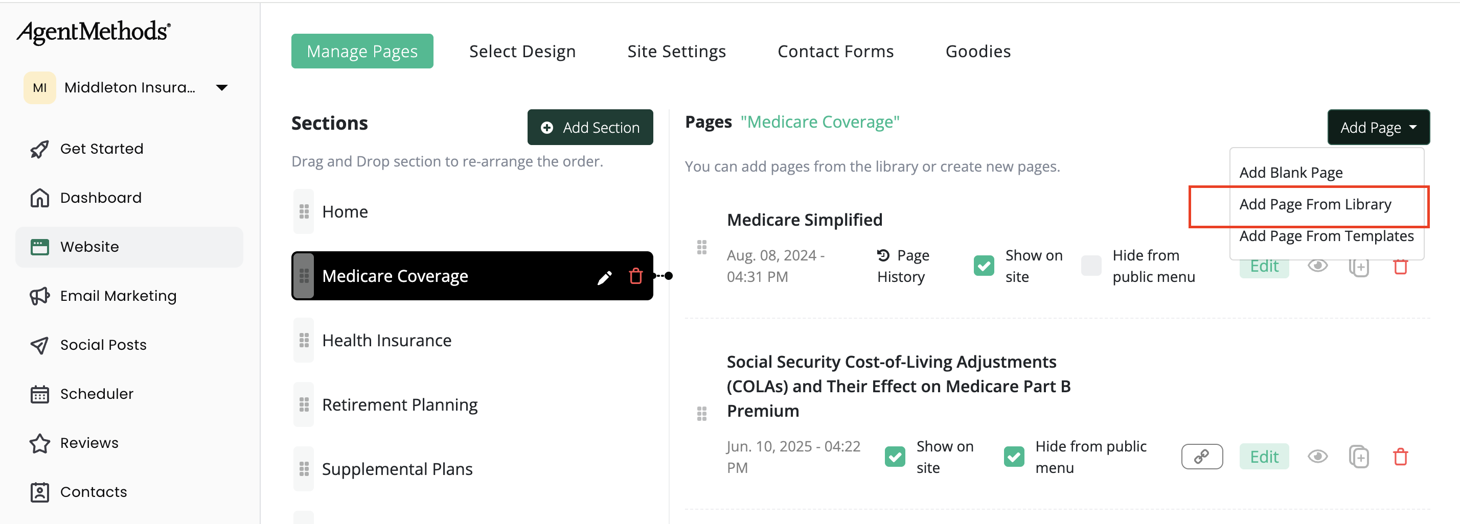Tip: Your page library makes it easy to build out your website and customize which pages appear on your site.